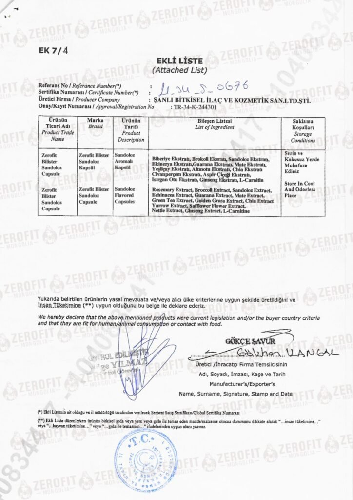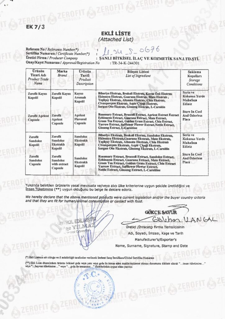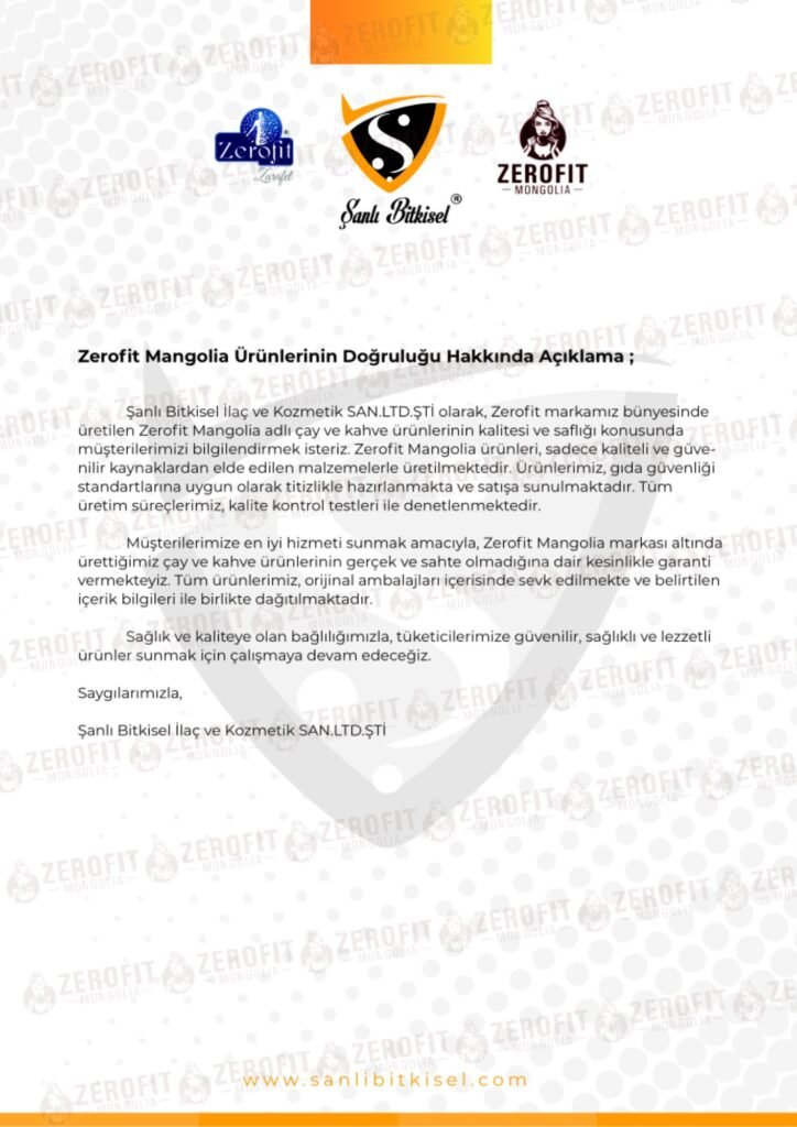 Зерофит Монголия” нь Туркийн улсын Şanlı Bitkisel (Шанлы Битсел) компанийн албан ёсны гэрээт борлуулагч бөгөөд 2022 оноос хойш тус үйлдвэрийн шилдэг борлуулалттай тэргүүлэгч брэнд болох “Zerofit” бүтээгдэхүүнүүдийг Монголын зах зээлд шууд үйлдвэрээс нийлүүлж байна. Бид: